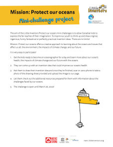 The Little Inventors Mission: Protect our Oceans - Mini challenge project consisted of 6 ocean-themed challenges designed to be done as a quick and fun activity at home or school or be delivered to students as a series of full lessons.