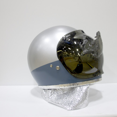 Finally the worrying part, how do you replicate a loose asteroid hitting your helmet? This time a claw hammer came in useful! Several blows to the visor give the impression that an impact has occurred, and this reveals the life-saving device behind the visor.
