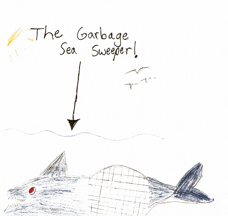 Within this work, I tried to capture how Luiza's drawing is cute but also a little scary. I think this Sharky-Fish looks cute but mischievous. I hope it looks scary enough to frieghten fish away while it collects garbage from the ocean.